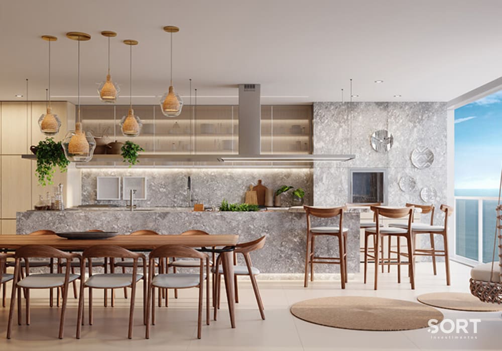 Este empreendimento foi projetado para te deixar mais próximo da brisa do mar, calmaria e te proporcionar momentos únicos, as unidades tipo 01 contam com vista para o mar, 195m² privativos e 03 suítes, sendo 01 master com infraestrutura para spa.