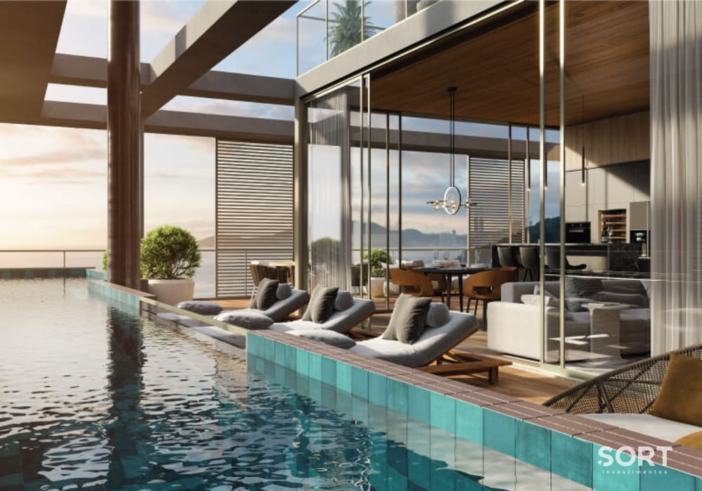 O projeto de interiores, assinado pelo arquiteto Stefan Gallasch, estabelece uma estética harmoniosa com a paisagem exuberante da Praia Brava. Os proprietários têm a oportunidade de personalizar os acabamentos, escolhendo entre diferentes opções de piso, cores, gesso e outros detalhes, de modo a alinhar o espaço com sua própria essência.
